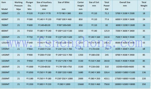 All of above ensure low failure and high yield of the aluminium extrusion pressTechnical data of Aluminum Extrusion Press